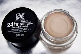 After patting that onto my lid, I go in with an eyeshadow base. If you don't have oily lids you can skip the first step and start here. The purpose of a base is that your shadow will stick better to your lid without creasing, you'll see brighter more true to color pigmentation and you'll also cancel out any discoloration or veins on your eyelids. My very favorite is Painterly Paint Pot by Mac, but if you're looking for shimmer, Maybelline makes a great version as well for a fraction of the cost. Unfortunately, Maybelline doesn't make a matte color and that's what I love about Painterly. I apply this with my finger.